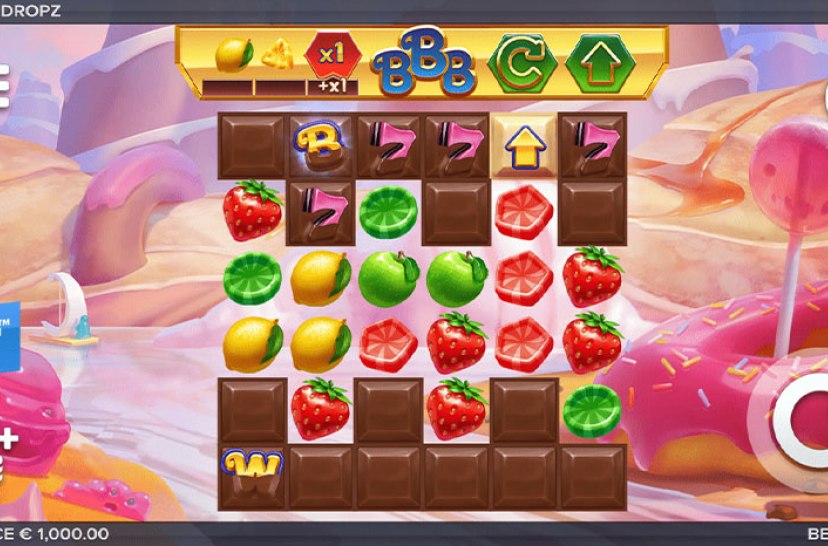 A lucky mouse has found the secret entrance to Candyland! Join in the adventure playing the Dropz machine dispensing sweet caramels and candied fruits. Take as much as you can because in Candyland, the Dropz machine pays out generously and never runs out! Dropz is a 6 reels, 6 rows sweet tooth slot. It comes with expanding rows, locked wilds, multipliers, a bonus and a super bonus game, and a max potential of 25 000 x bet!
