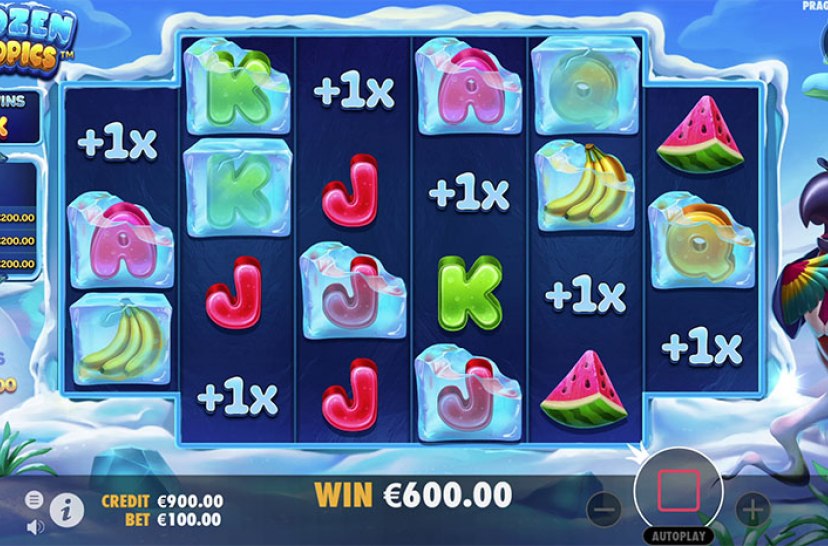 Break the ice for big wins with Frozen Tropics. Various juicy fruits and card ranks appear across six reels in a 3-4-4-4-4-3 formation. These symbols are sometimes frozen in cubes of ice, with these cubes breaking whenever they form part of a tumble win.