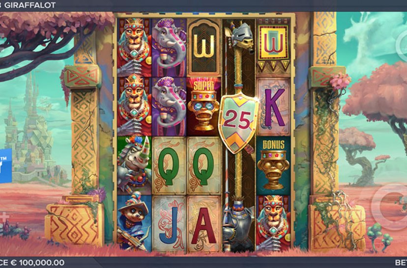 After a hard won battle, the Kingdom of Catalot enjoys a fragile peace. But the castle lies in ruins and resources are scarce. To restore its glory, King Leonhart seeks the Holy Chalice, a relic of endless magic. He sends his greatest knight, Sir Giraffalot and his closest allies to reclaim the relic. Through forgotten lands and abandoned strongholds, the fate of Catalot rests on their success. Giraffalot is a 5 reel, 4...