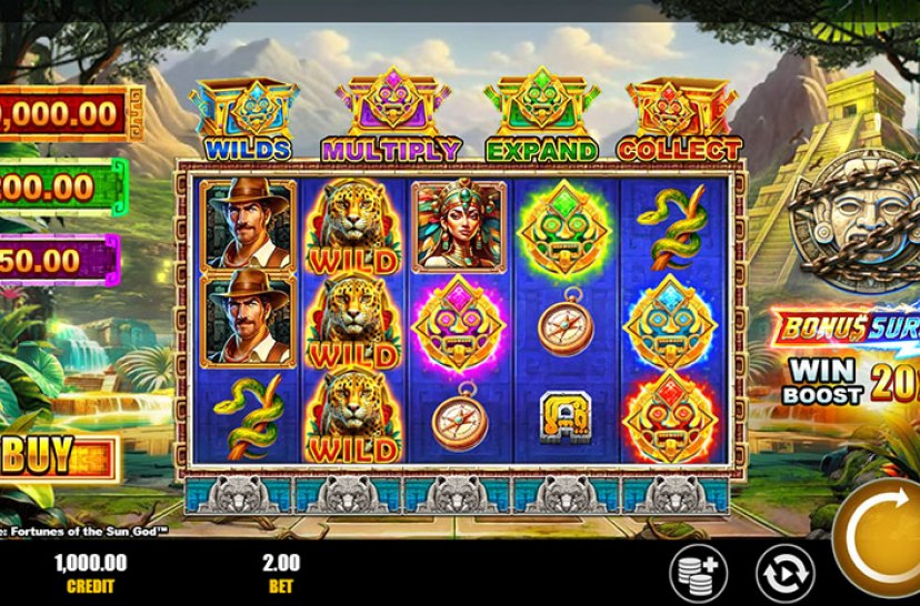 Set off on a high-stakes jungle expedition in Julian Stone: Fortunes of the Sun God™. Explore ancient temples in this action-packed slot featuring Wild Reels, Free Spins with up to four Divine Upgrades, and the Bonus Surge™ mechanic, boosting win potential up to 5,225x your bet.