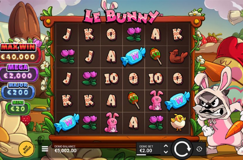 Le Bunny by Hacksaw Gaming brings Smokey back in disguise for another clever heist. This 6-reel, 5-row Super Cascade slot uses cluster wins and chaotic mechanics to keep players guessing. With shifting symbols and unpredictable action, every spin builds toward surprising outcomes in a playful yet intense experience driven by confusion and clever design.