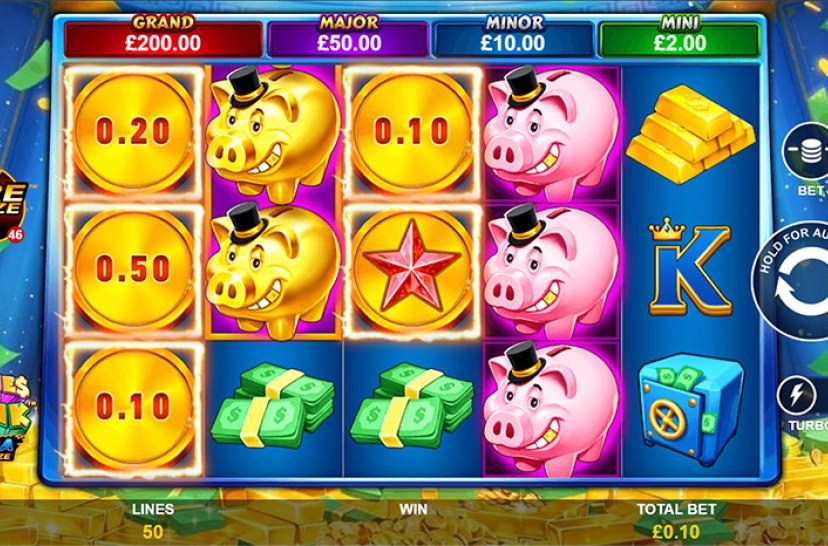Bust open the piggy bank and get your reward in this 50-line slot. Try your luck and win 8 Free Games with expanding Special Wilds for a chance of dazzling wins, or trigger the Gold Wild Respins with shifting stacked Wilds. During the Mega Fire Blaze feature, land coins for cash prizes, keys to unlock and expand the reels revealing win multipliers of up to 5x, and star symbols for a special prize!