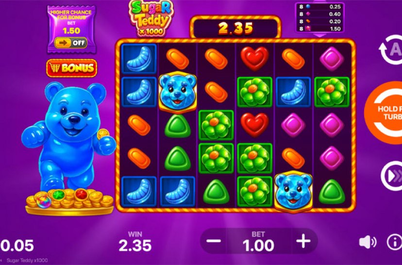 Dive into sweetness with Sugar Teddy, a vibrant 6×5 scatter-pays slot packed with cascading wins. Surprise Wilds and multipliers up to 1,000x fuel the action, while Free Spins and Super Free Spins introduce progressive multipliers. A colourful, high-energy candy adventure bursting with momentum and sugary win potential.