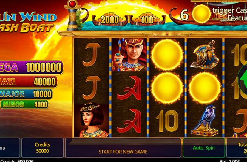 Set sail on the river of fortune in Sun Wind Cash Boat, a high-energy slot inspired by ancient Egyptian riches. Trigger the Cash Boat feature with Sun symbols, stack Wilds, and chase powerful rewards across blazing golden reels. Fast-paced gameplay and bold visuals keep every spin intense and full of destiny-driven excitement.