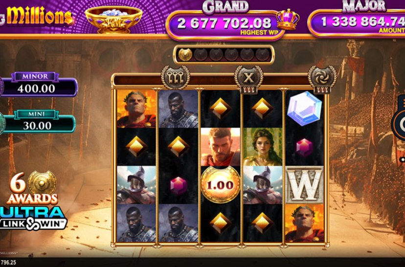 Links of Glory King Millions™ delivers Roman-themed slot gameplay powered by the Links of Ra II™ engine. Featuring the King Millions™ Bonus, players can unlock enhanced rewards, dynamic features, and elevated win potential in an engaging experience inspired by ancient grandeur.