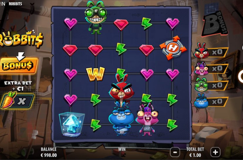 Join the daring heist in Robbits, Quickspin’s newest IP featuring a fearless crew of robotic rabbits. This Cluster-Collect slot starts on a 5×5 grid and can expand up to 8×8. With Tumble Mechanics, Carrot Power-Ups, Expanding Reels and Upgradable Symbols, every move fuels a clever, high-energy robbery.